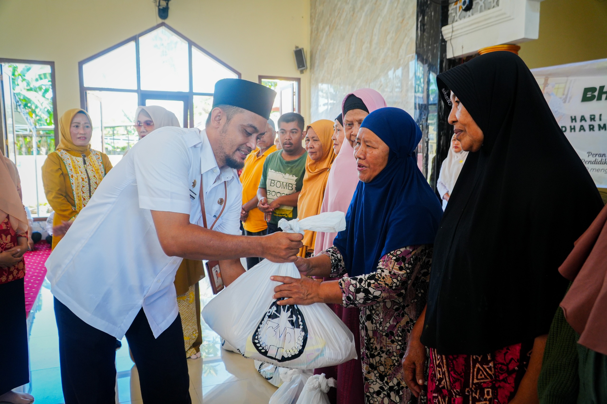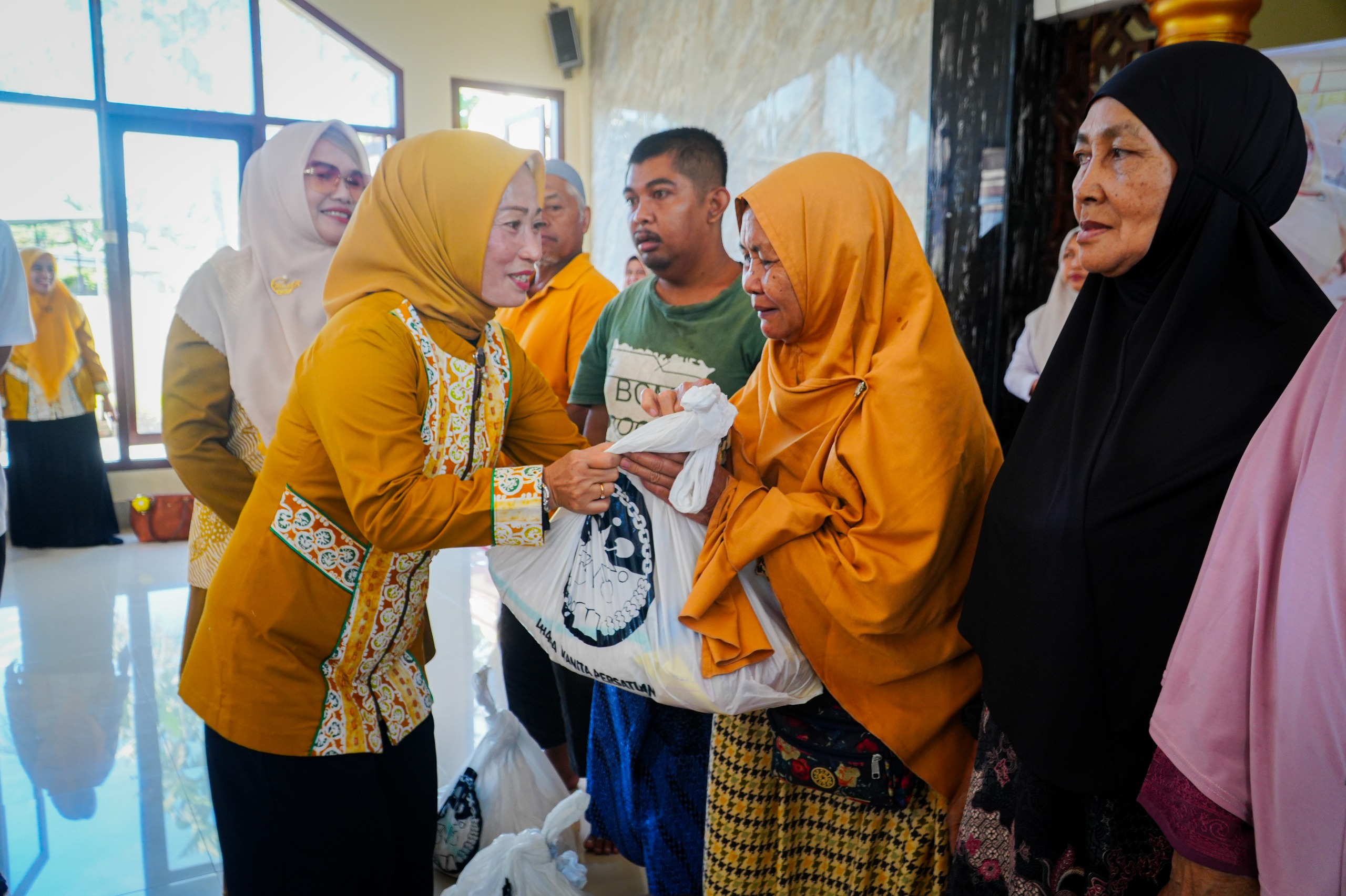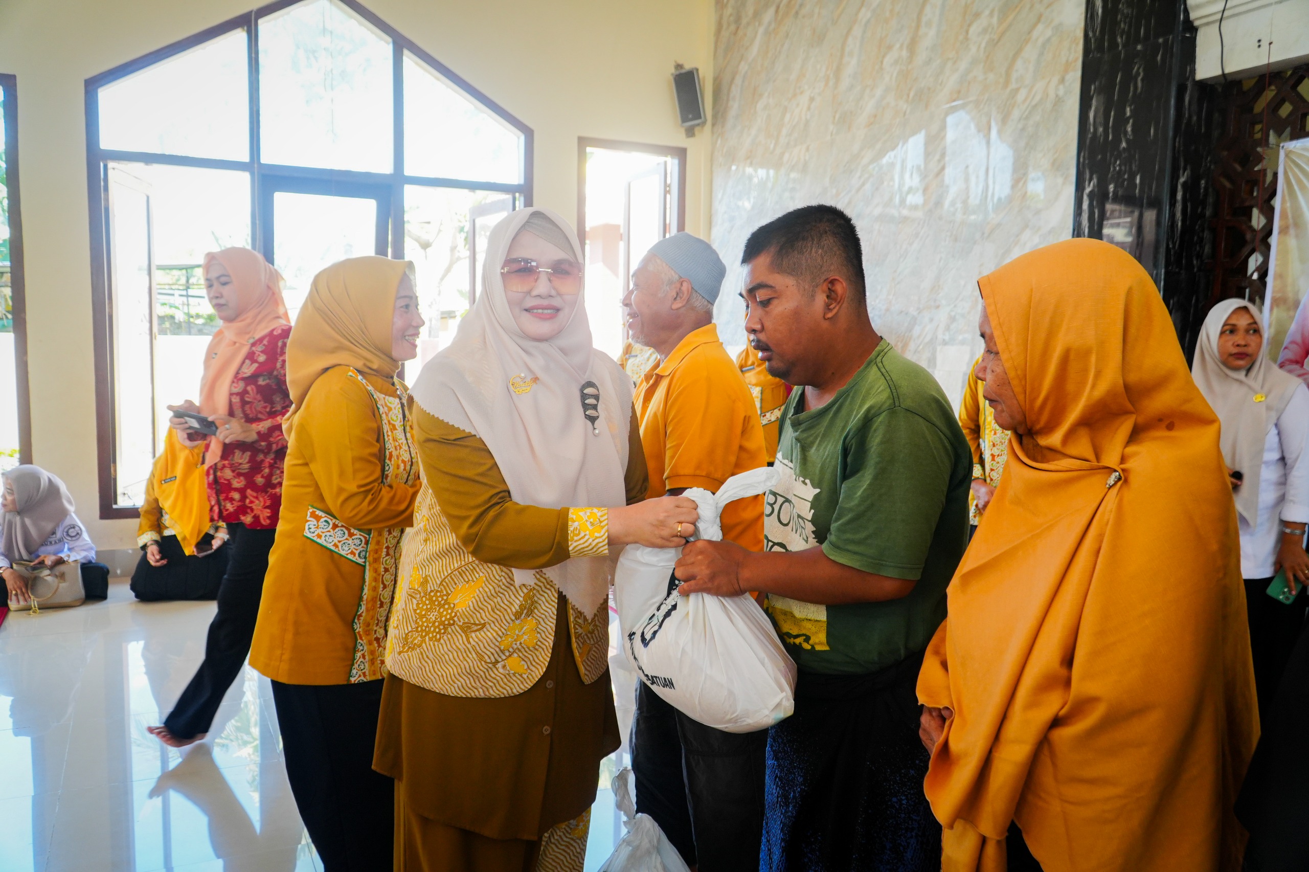 Mataram — Raut bahagia terpancar dari wajah para lansia, warga kurang mampu, serta anak-anak berkebutuhan khusus saat menerima paket sembako dari Dharma Wanita Persatuan (DWP) Kota Mataram). Kegiatan tersebut berlangsung di Musholla Al-Mujtahidin, Lingkungan Pemamoran, Kelurahan Monjok, Kecamatan Selaparang, Rabu (12/11/2025).